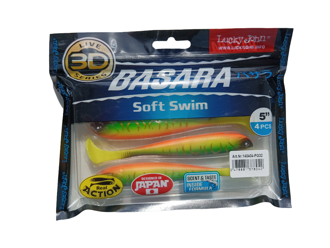 Виброхвост силиконовый BASARA SOFT SWIM - мягкая «съедобная» приманка, имеющая реалистичную окраску с 3D эффектом. Реалистичная с запатентованной системой удержания и рассеивания аромата Lucky John пиманка отлично привлекает рыбу. Размеры 5 – для ловли щуки и судака. Приманка покрыта аттрактантом с запахом креветки, в теле сделаны специальные пазы для удобного монтажа на офсетном крючке.