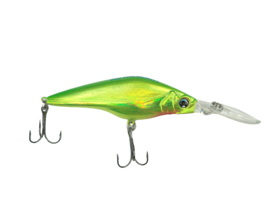 Воблер YU-ZORI SHAD созданы самыми опытными японскими инженерами и мастерами. Лопасть помогает приманке с длиной 7,5 см и массой 10 гр погрузиться на 3,5 м. Кроме того, прочная деталь смягчит урон при столкновении с подводной преградой. Если дно достаточно чистое, можно использовать проводки с касанием его поверхности. Конструкция, сложная система балансировки делают SHAD YU-ZORI линейки 75SP устойчивым на любой скорости. Он покажет плотные, мелкочастотные колебания на простой равномерке. При слабом освещении привлечет внимание шумом громкой погремушки. А при попадании света, благодаря специальному покрытию, будет создавать заметные блики. Потому серия подходит и для троллинга. Для тех, кто планирует ловить в заброс, предусмотрена магнитная система переноса веса. Передвижение шариков по продольному каналу улучшает кастинговые показатели. Воблер наделен нейтральной плавучестью. Потому будет уверенно держать заданную глубину, а на паузе в Stop & Go замрет неподвижно. Таким образом, даже ленивый, вялый хищник получит время, чтобы решиться атаковать. Приманку можно попробовать анимировать рывками. Добычей такого воблера будет в первую очередь зубастая щука и судак.